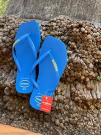 Outro sucesso é a Coleção Havaianas 2025/2026, que vem ganhando espaço nas escolhas deste fim de ano. O grande destaque são os modelos Top Vibes, que lembram o estilo vibrante das colaborações com a Farm — coloridos, alegres e com aquela cara de verão. Modelos com brilho e cores vivas também estão sendo bem procurados.